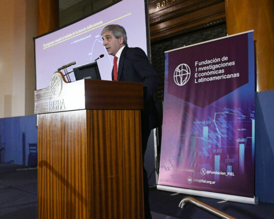 Lo prometió Luis Caputo en la BCBA y afirmó que “todavía no es el momento para que el Dólar flote libremente”. Durante la Reunión Anual de FIEL, el Ministro de Economía ratificó que el Gobierno seguirá “manteniendo la flotación del tipo de cambio entre bandas” porque “el esquema está bien calibrado”.